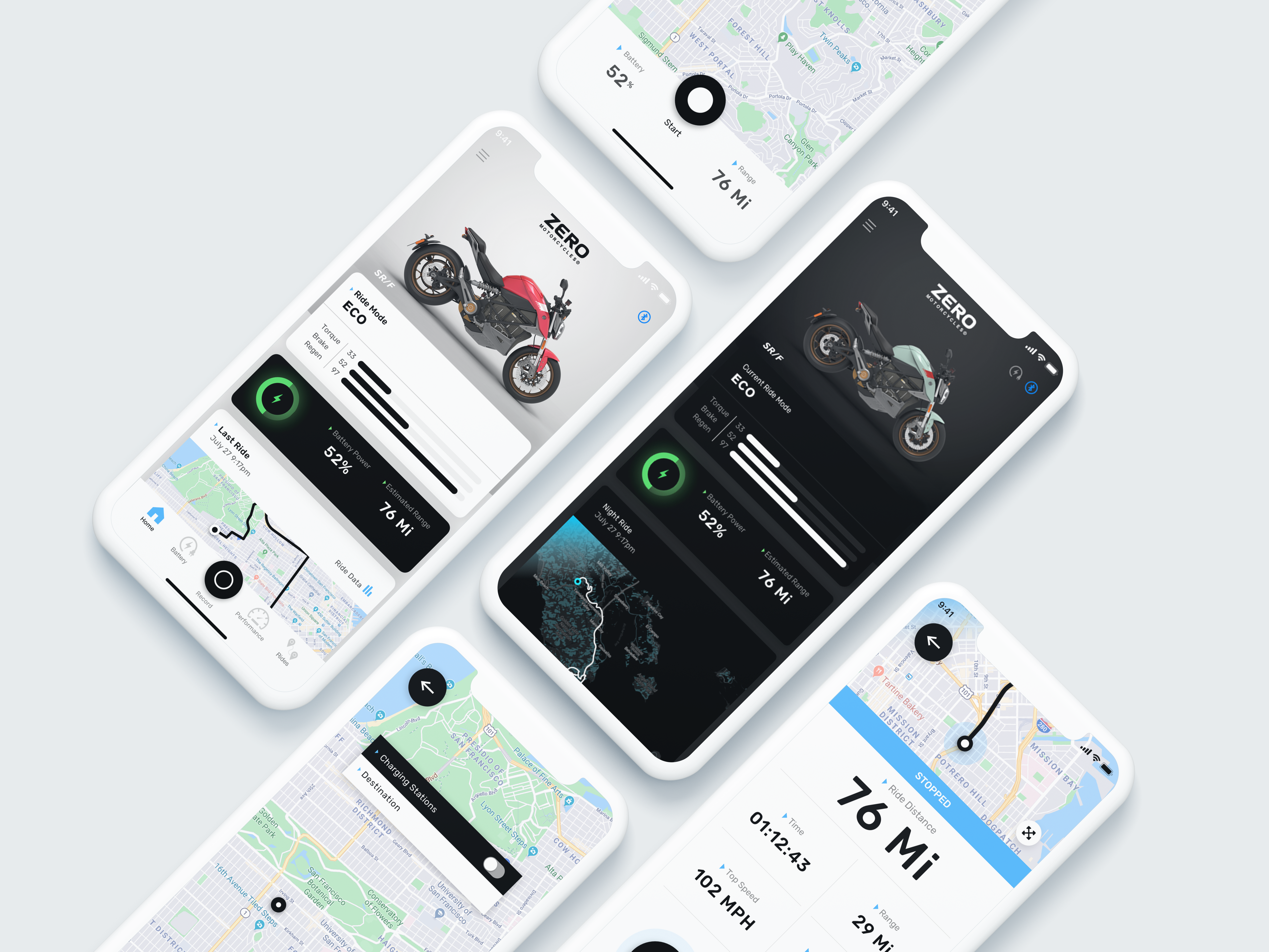 I was the Design Lead for the development of Zero Motorcycle's "Next Gen" app for it's full lineup of all-electric motorcycles. The app connects to the bikes dashboard and firmware to control performance, battery power, and record, replay, and share ride data, creating the industries first "Smart" Motorcycle.