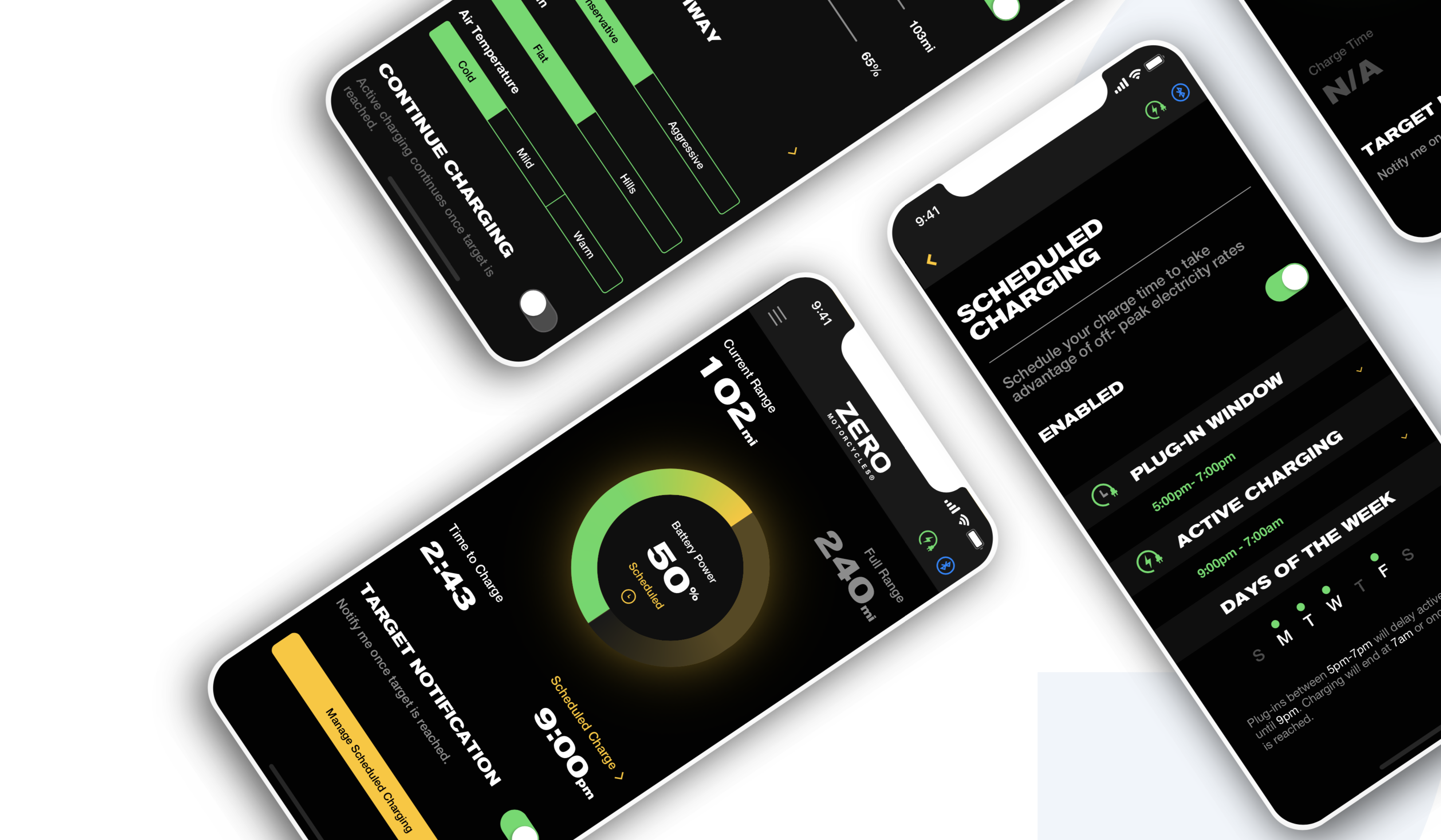 The "Next Gen" app connects to the motorcycle’s dashboard and Cypher III firmware, creating a feature-rich ecosystem, allowing riders to control the bikes performance with customized Ride Modes and dashboard. Utilizing cellular connectivity, riders have the ability to monitor the bike in four main areas: Bike Status, Battery Charging, Ride Data, and Updates / Upgrades.